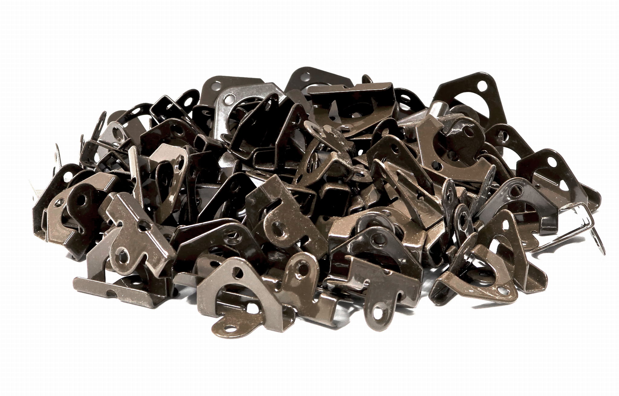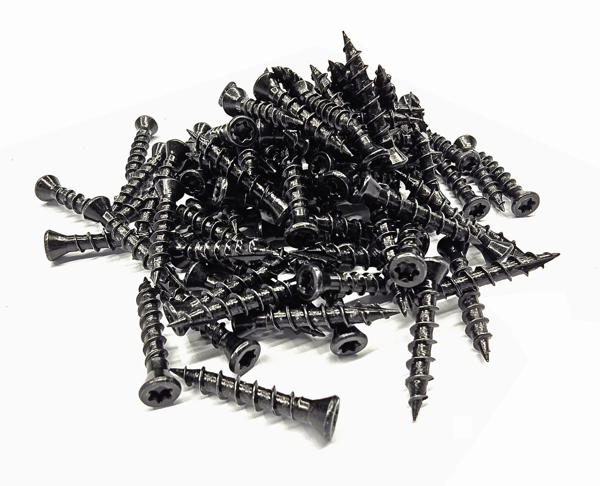 System montażowy do desek tarasowych FUBO Bamboo. W skład zestawu wchodzą klipsy środkowe oraz wkręty.
